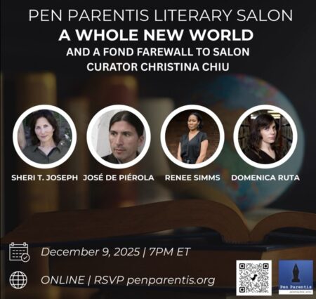 Join Pen Parentis on December 9th at 7pm EDT for A Whole New World – A Career Salon for Literary Parents, in conversation with Sheri T. Joseph, José De Piérola, Renee Simms, and Domenica Ruta!